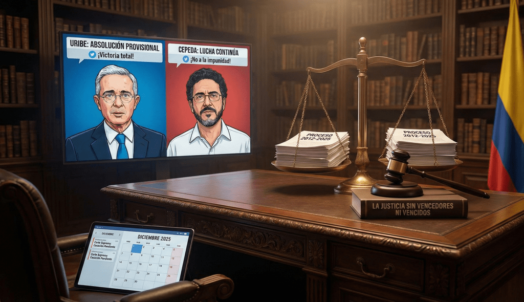 En las calles digitales de Colombia, donde las redes sociales arden como hogueras de juicio popular, un grito unánime resuena desde un lado: «¡Justicia por fin!». Del otro, un eco furioso responde: «¡Impunidad eterna!». Es diciembre de 2025, y las pantallas parpadean con memes triunfales y lamentos amargos. Pero en las frías salas de la justicia, donde las togas pesan más que los tuits, la historia de Álvaro Uribe e Iván Cepeda sigue sin epílogo. Es un duelo sin rendición, un laberinto procesal donde cada giro mantiene el suspenso, y la verdad se dibuja con trazos inciertos.